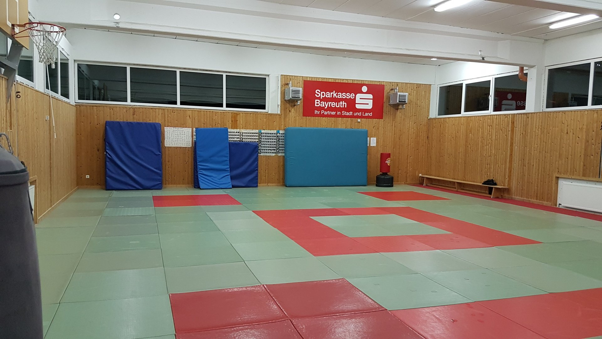 Unsere Pegnitzer Trainingshalle ist ca. 140 qm² groß und ist mit Kampfsport Matten ausgelegt, was ein relativ weiches Fallen bewirkt.